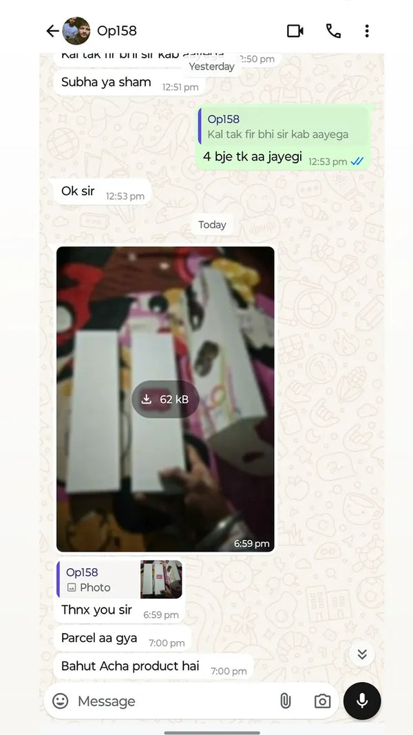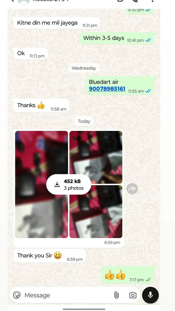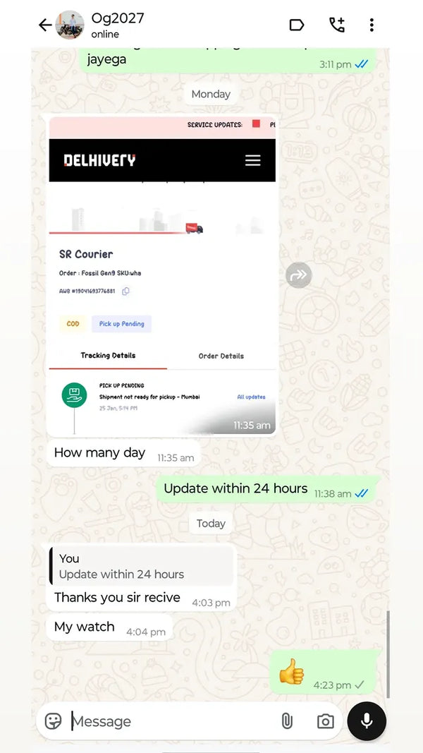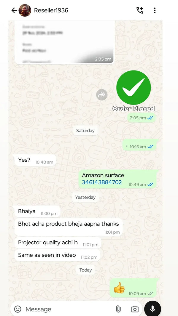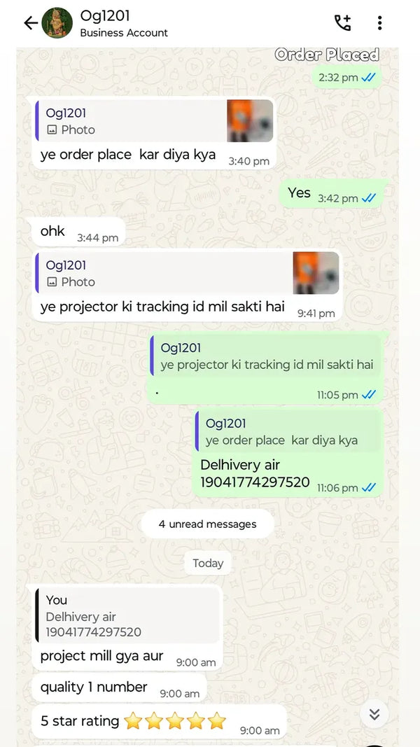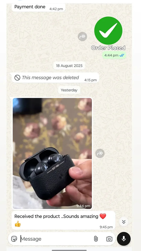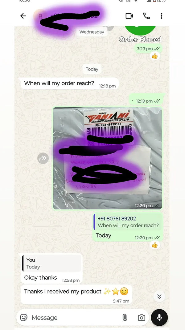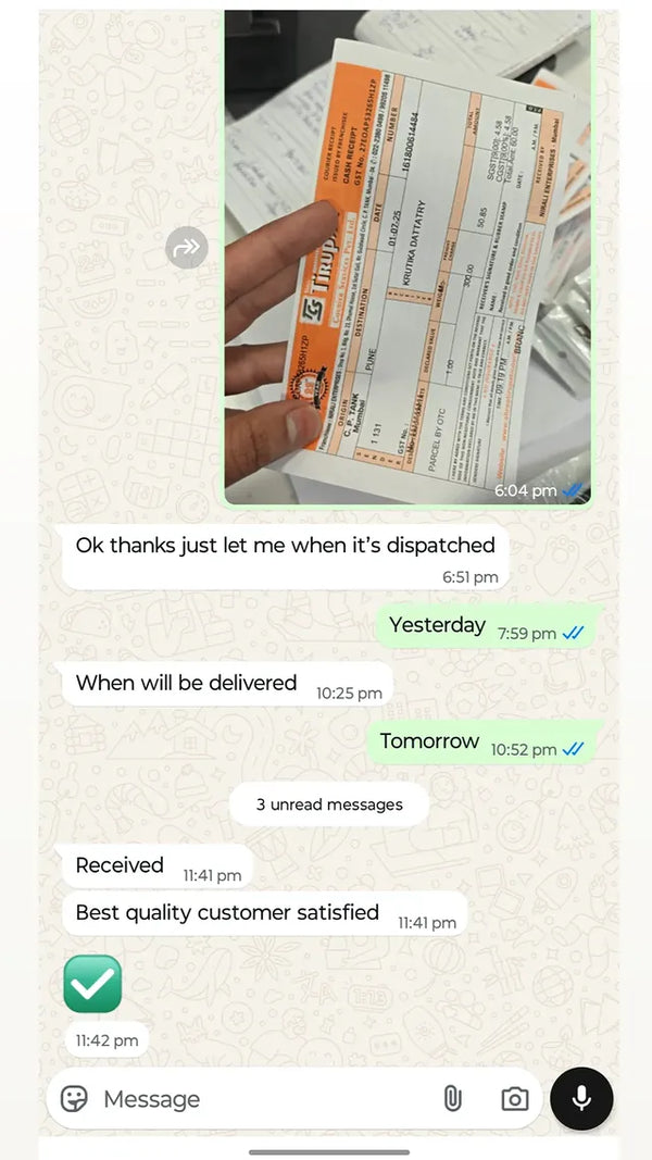 • Once the order is placed, you will receive an order confirmation receipt via WhatsApp and Email.